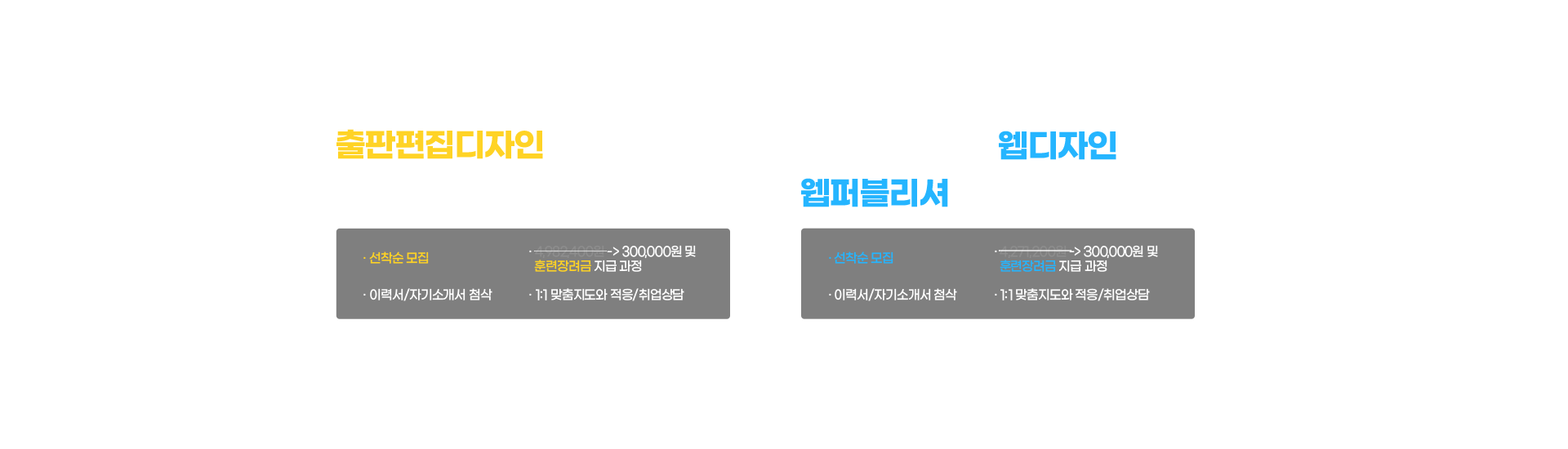 김정원, 김도경 취업생다른 교육과정 이후에 심화 과정에 대한 필요성을 인지해서 관련 교육을 찾아보다가 하이미디어의 교육과정을 확인해보니 포르폴리오 중심의 커리큘럼에서 많은 도움을 받을 수 있을것 같아 선택하게 되었습니다. -